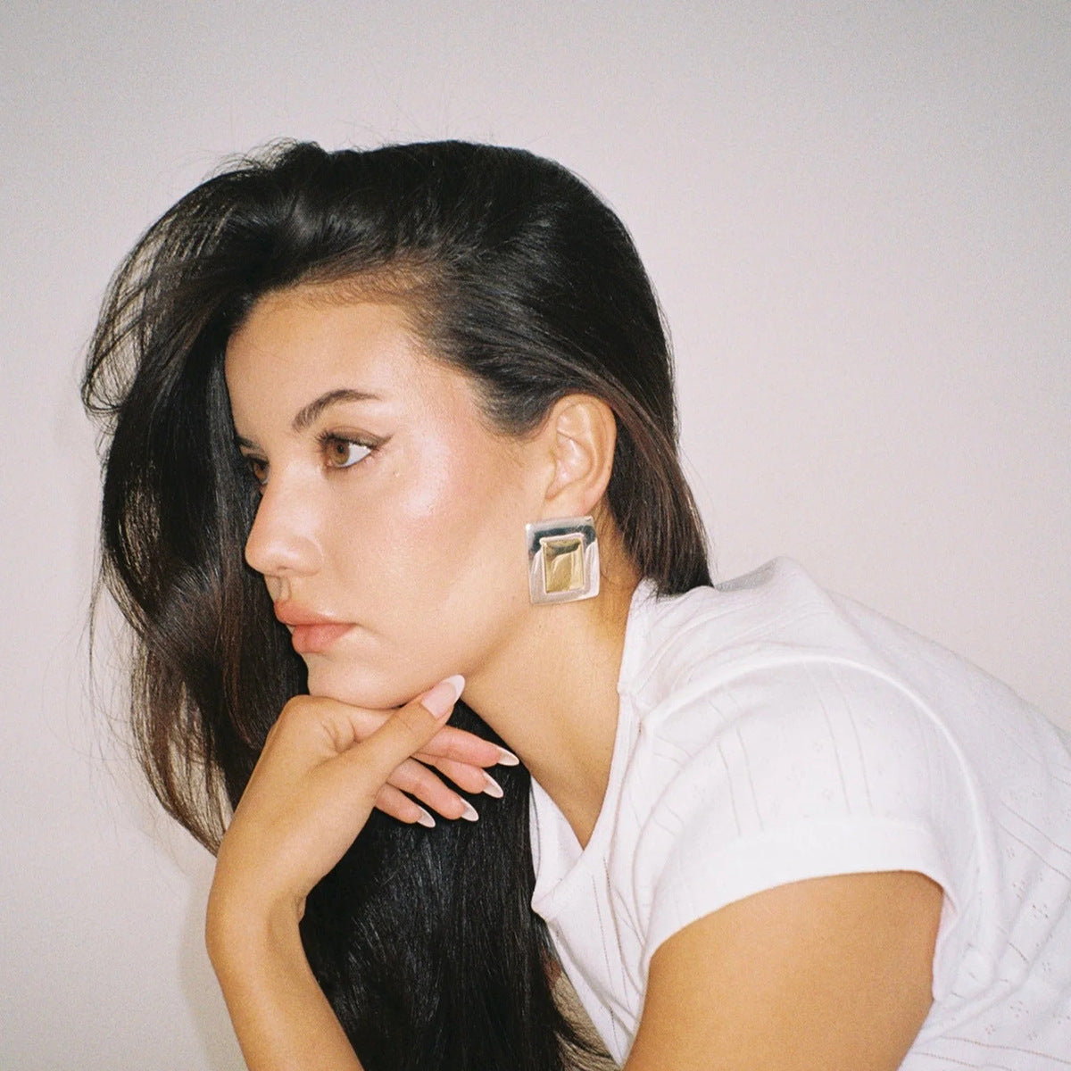 18K Gold Stainless Steel Rectangular Back-shaped Surface Earrings Ins European And American