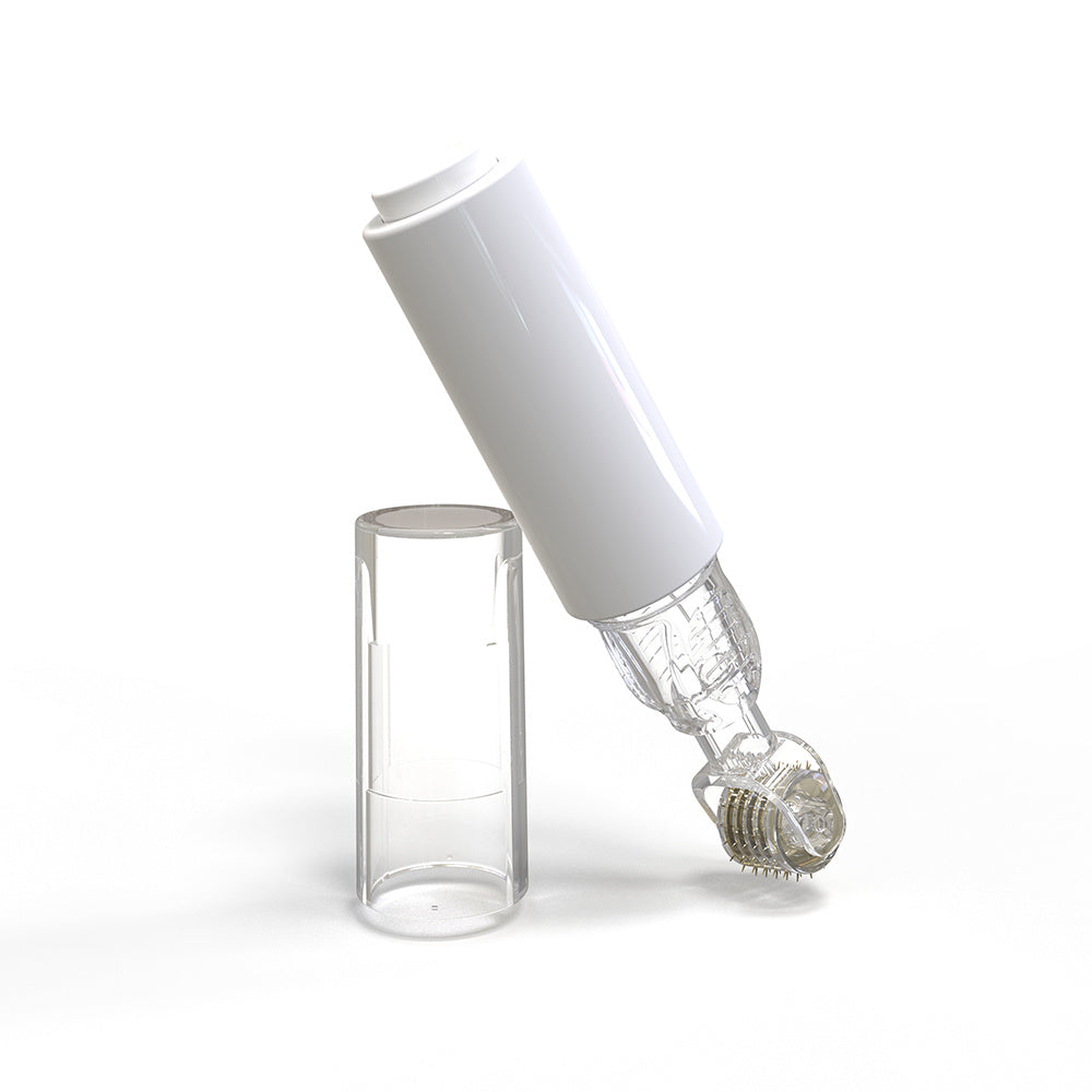 1. The Hydration Roller is a 2-in-1 system. As you roll the microneedle roller over your skin, it simultaneously uses your favorite serum.