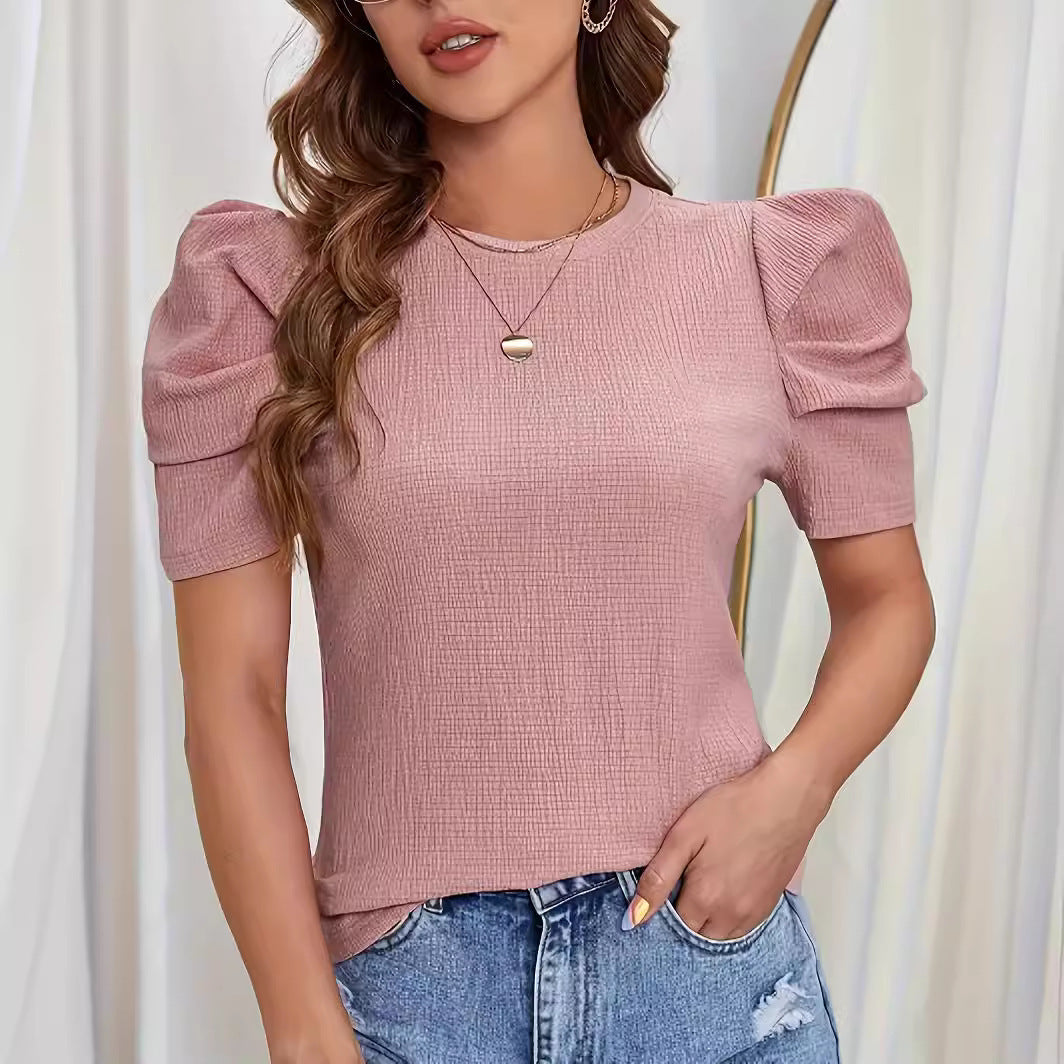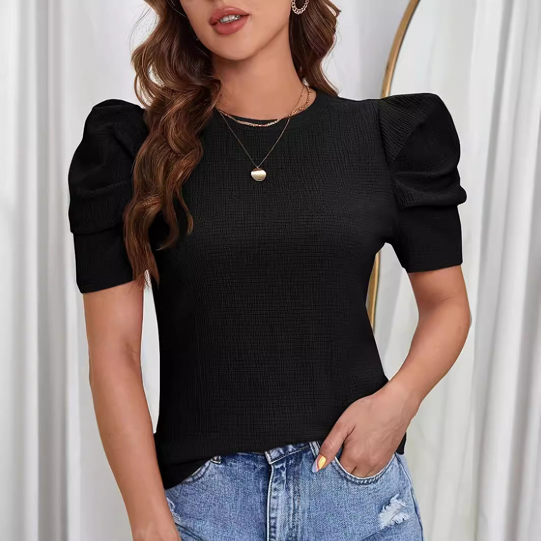 Casual Solid Color Puff Sleeve Solid Round Neck T-shirt