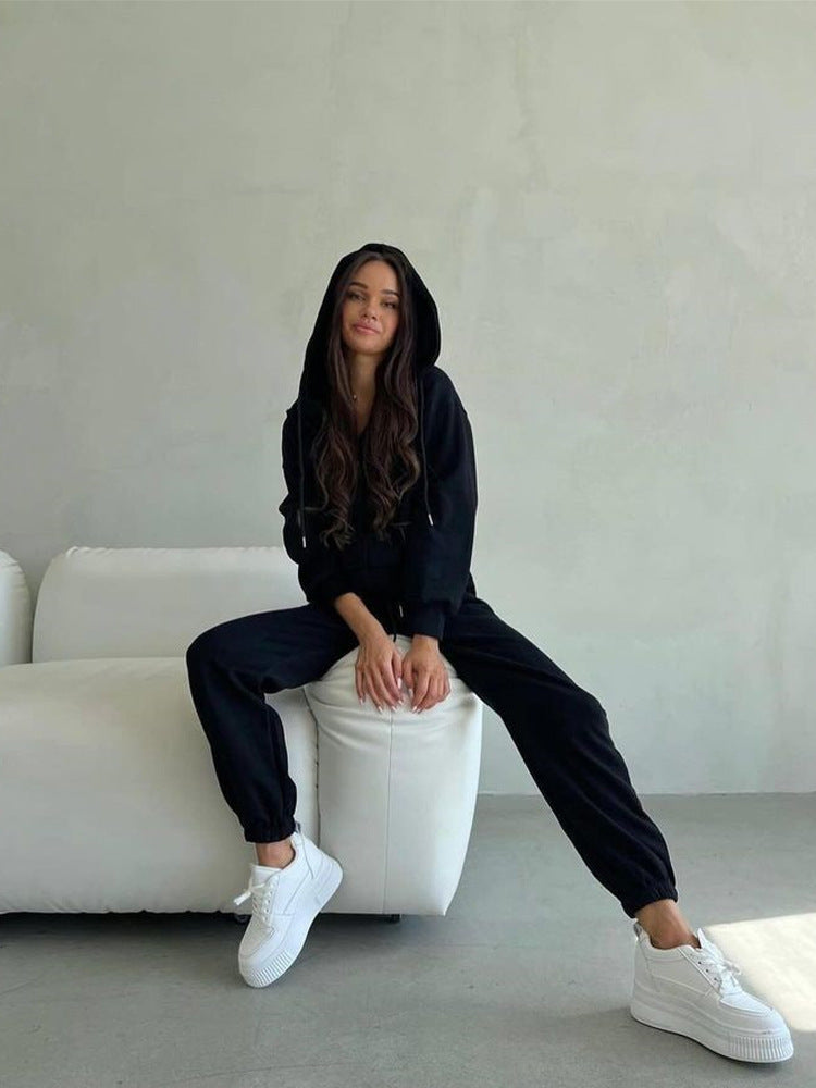 Casual Women's Suit Solid Color Long Sleeve Zipper Hooded Sweatshirt