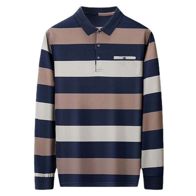 Fashion Colorblock Striped Long Sleeve Lapel T-shirt