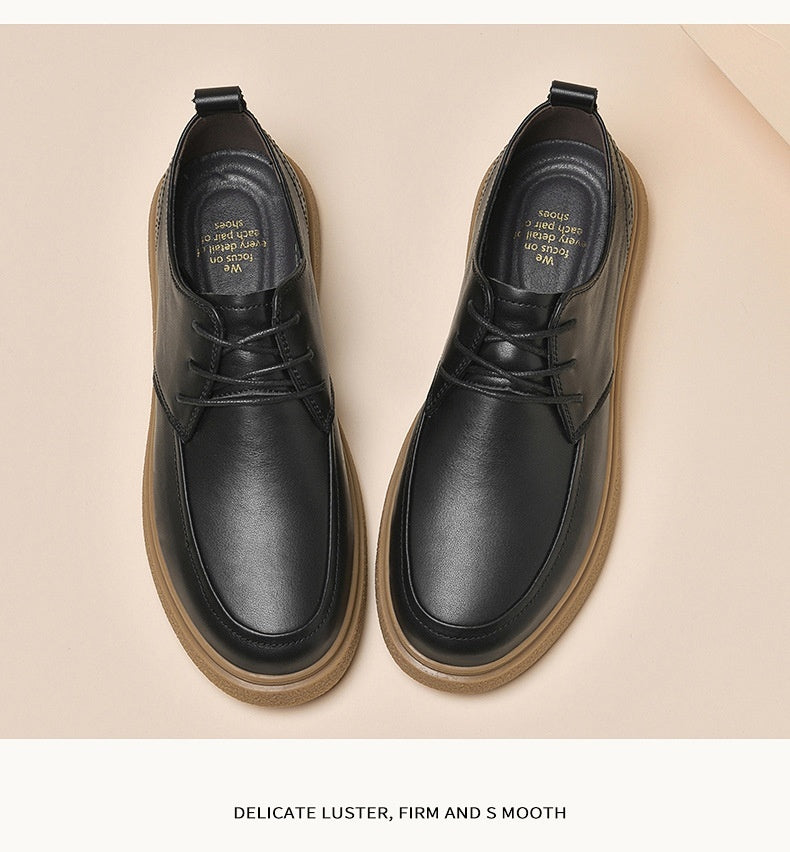 First Layer Cowhide Men's Casual Pumps Sole Leather Round Head Low-cut White Shoes
