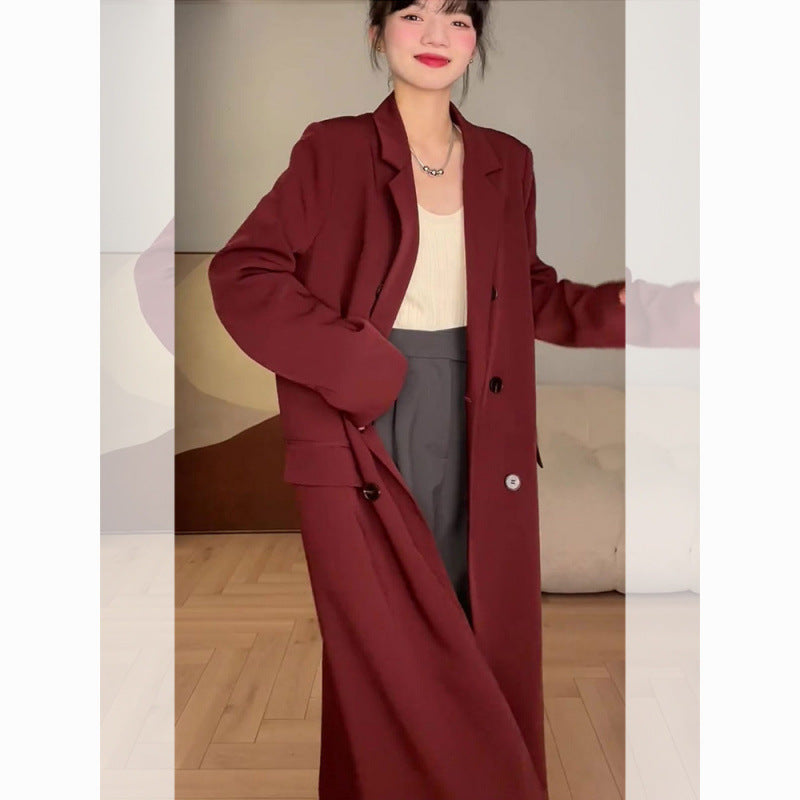High-grade Red Mid-length Suit Woolen Coat For Women