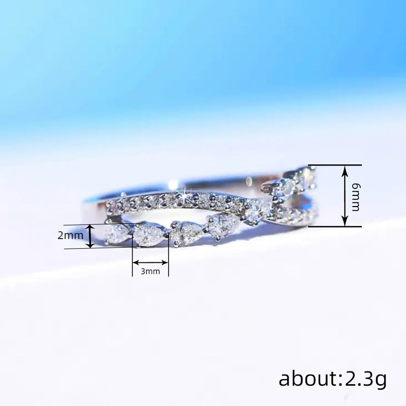 Inlaid Zircon Ring Female Cross Water Drop