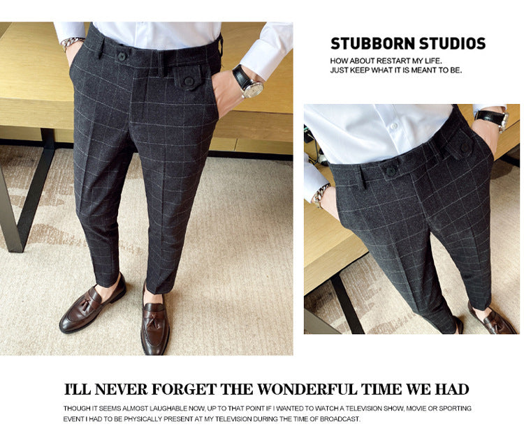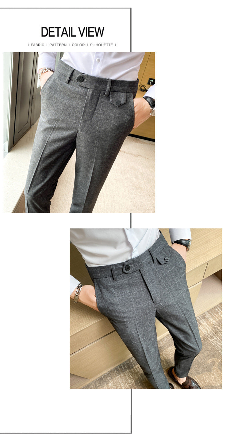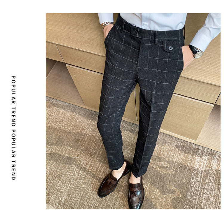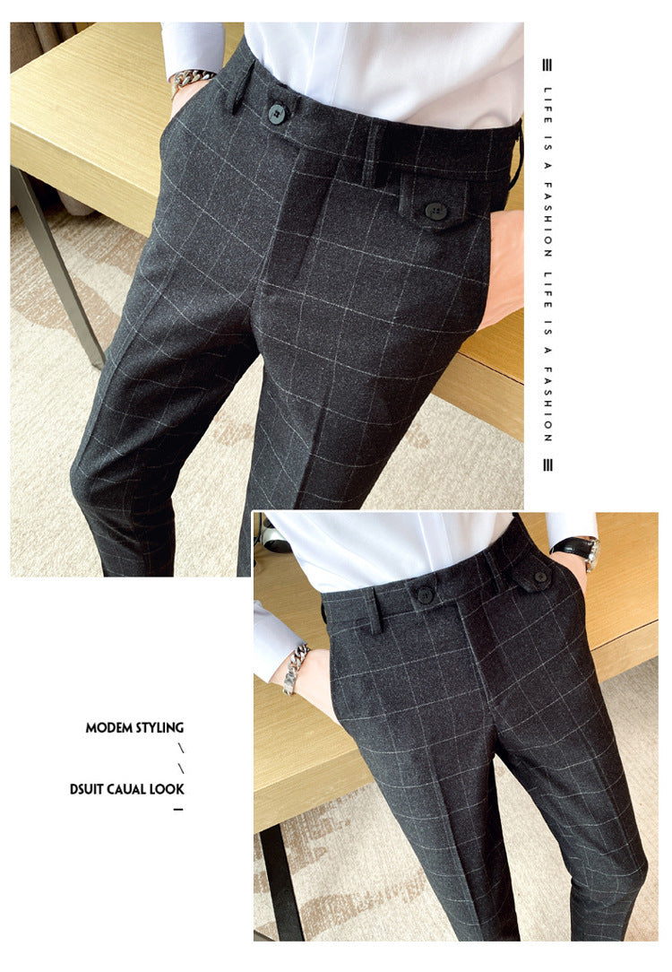 Korean Style British Classic Checkered Elegant Slim Fit Men's Best Man Pencil Pants Suit Pants