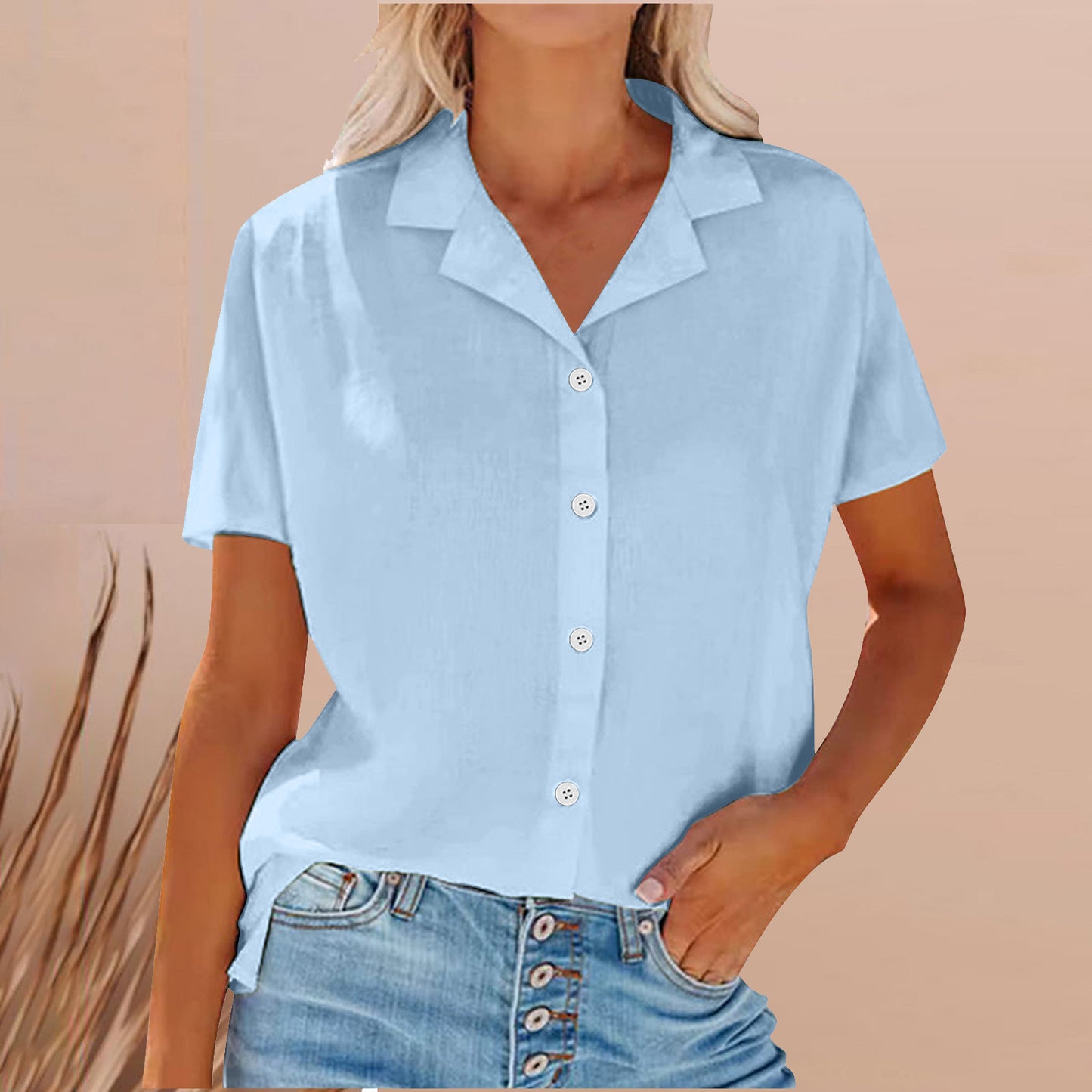 Lapel Cotton And Linen Casual Shirt For Women