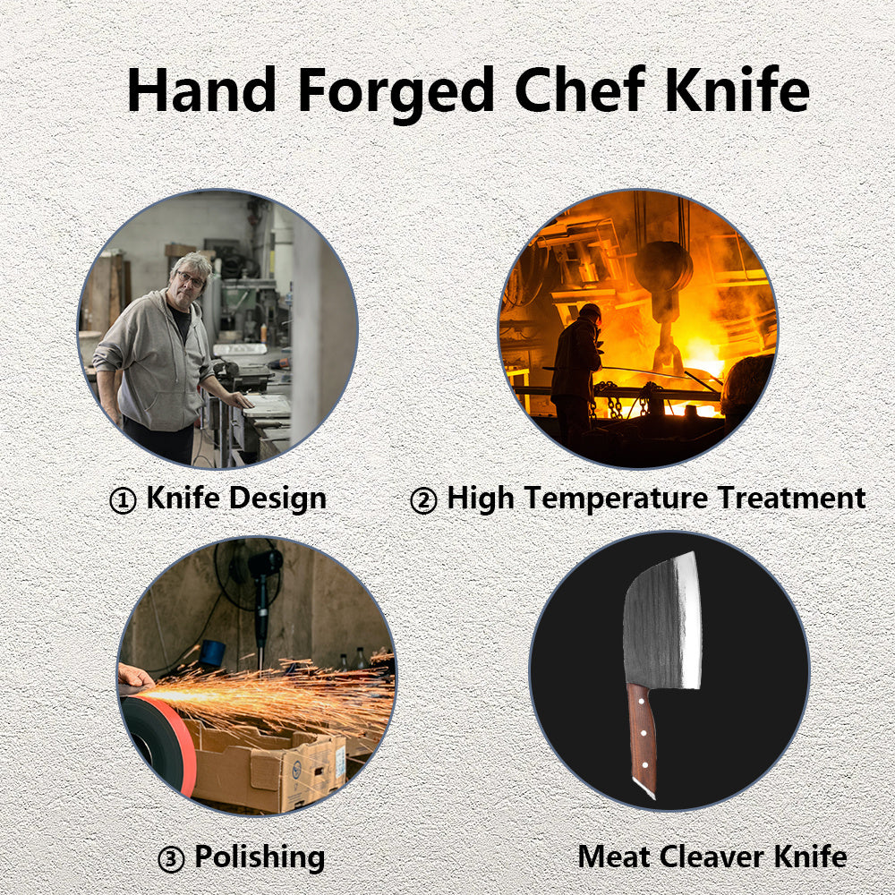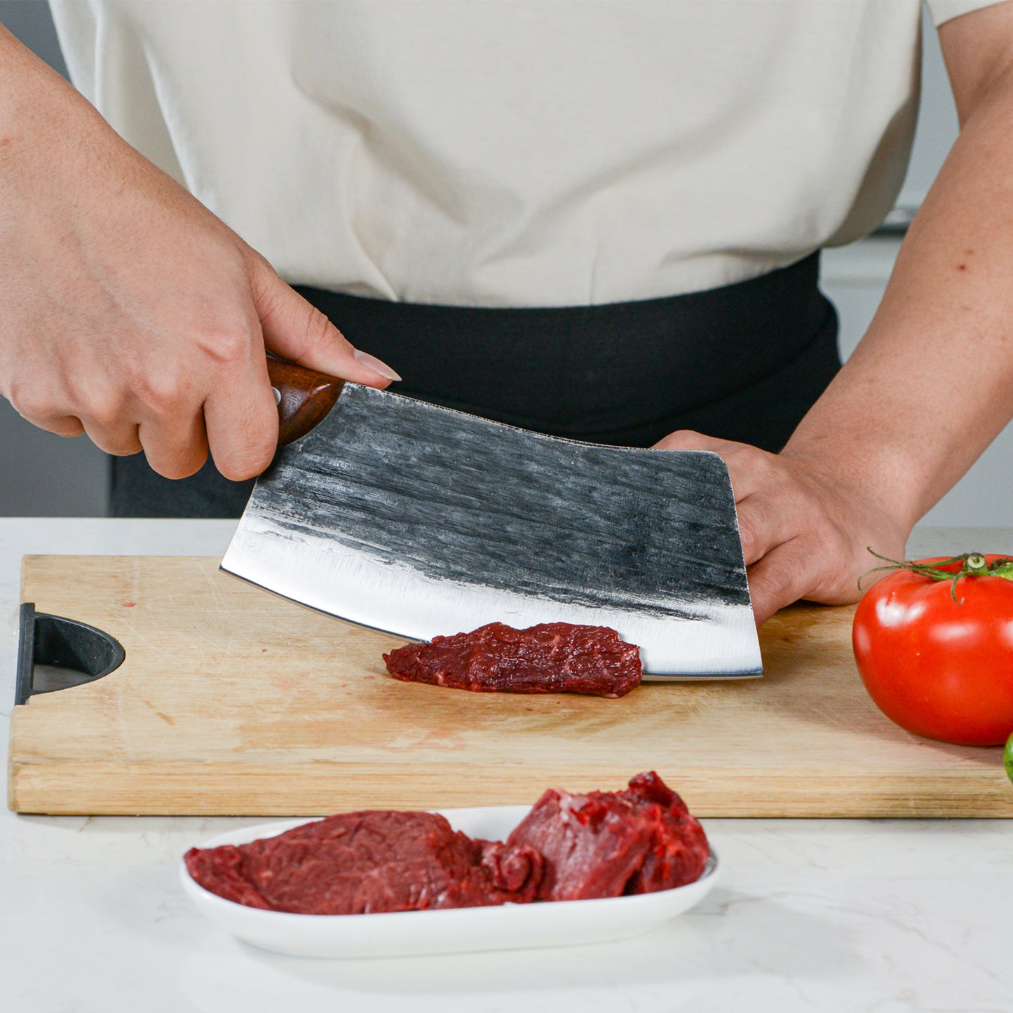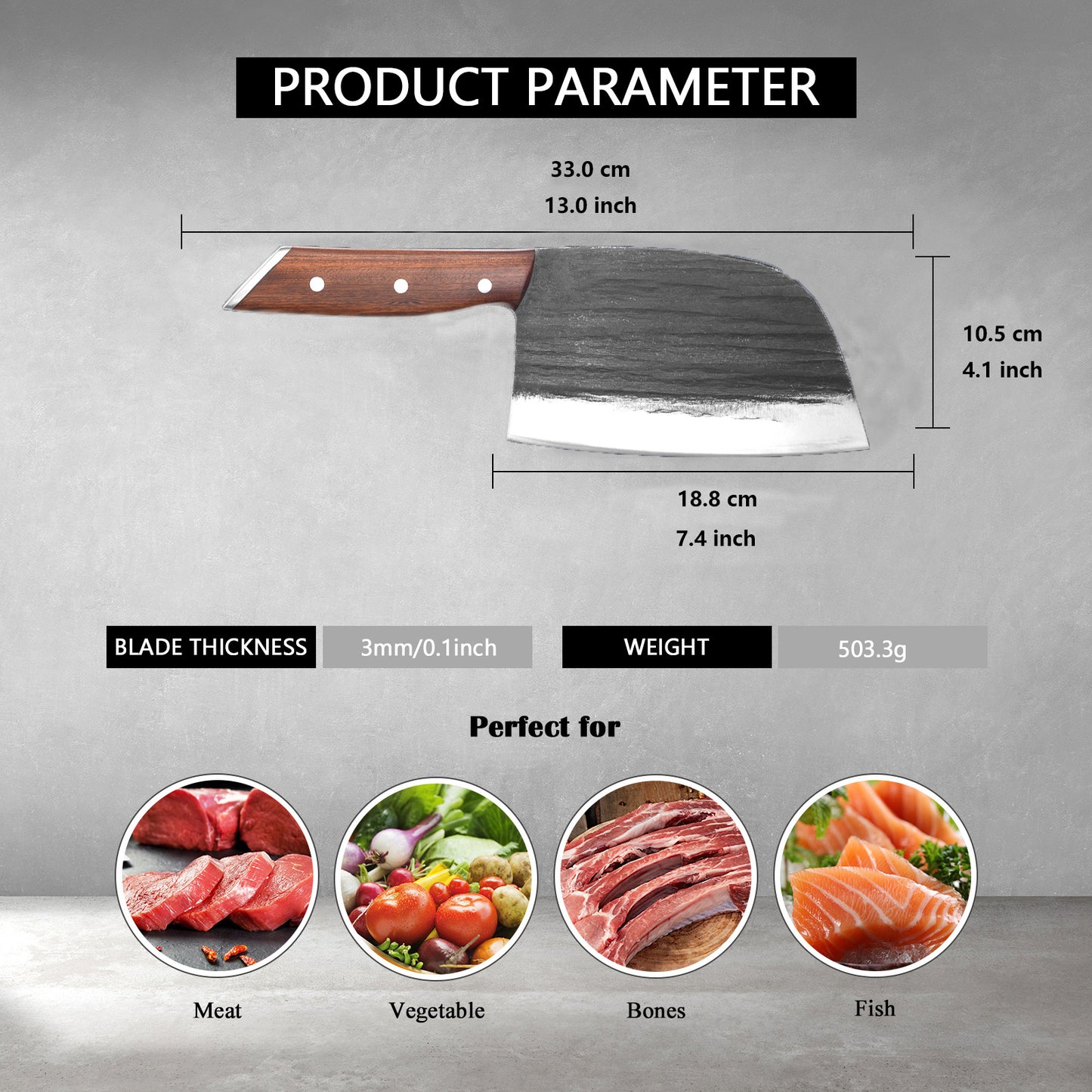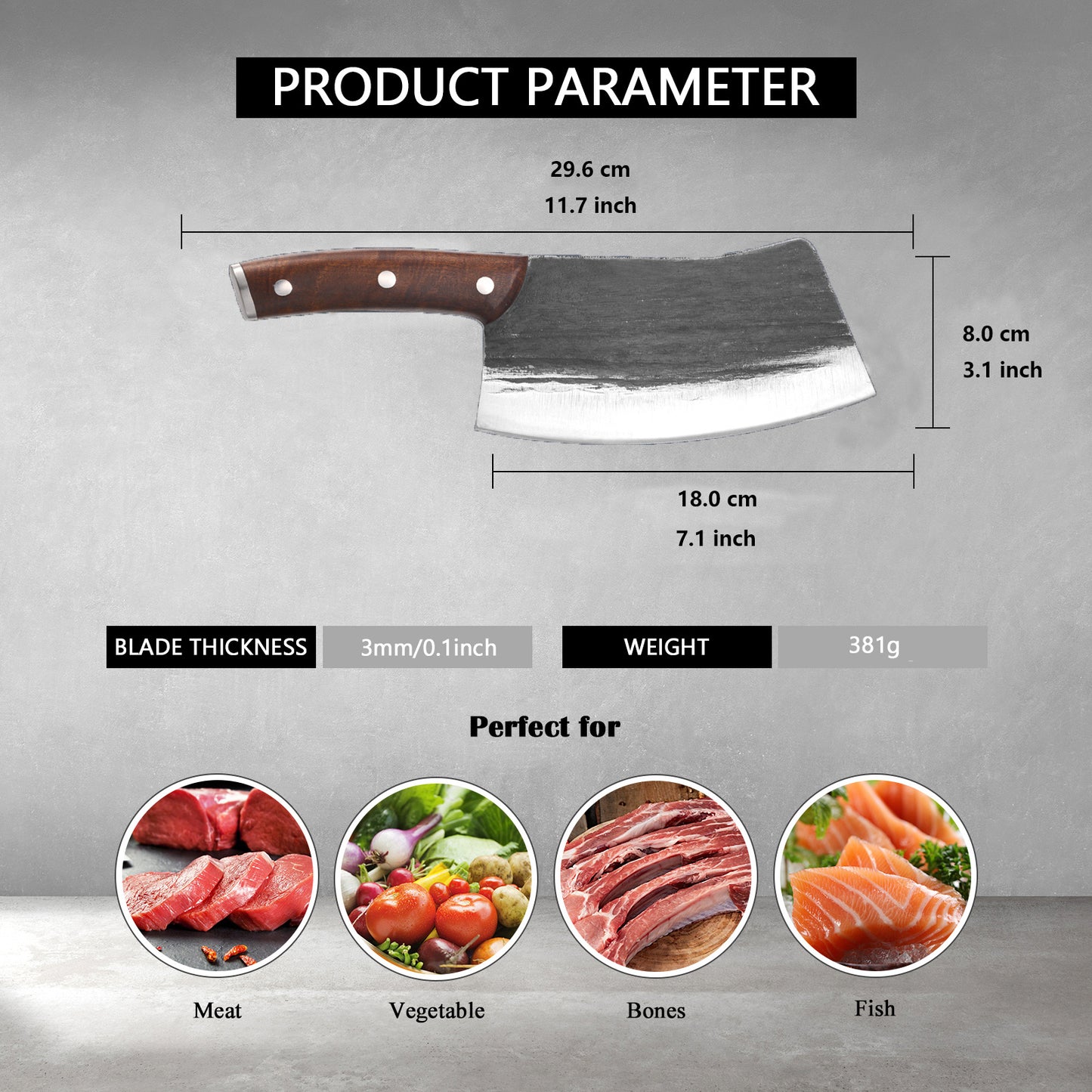 - Hand forged knife is ideal for chopping, slicing, dicing, mincing, and more. Meat is clever with a sharp edge for easy cutting, making it perfect for butchers and home cooks alike.