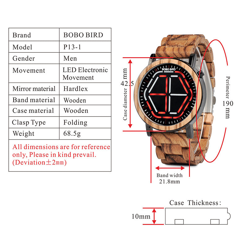 Men'S Wooden Watch Wooden Digital Student Electronic Watch