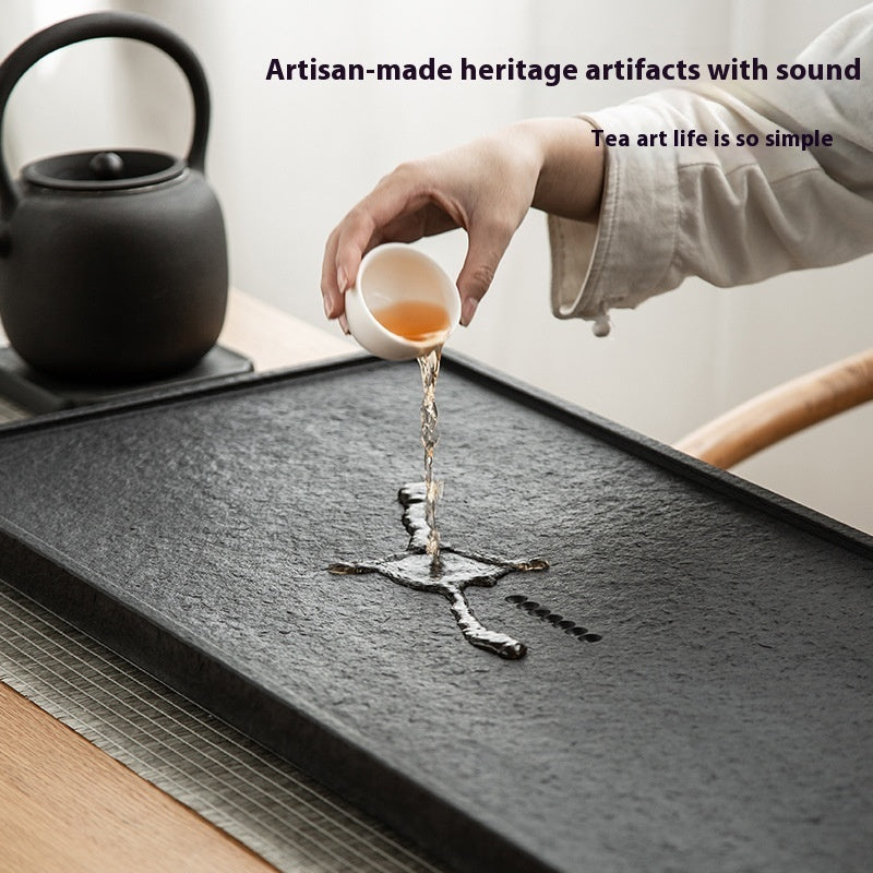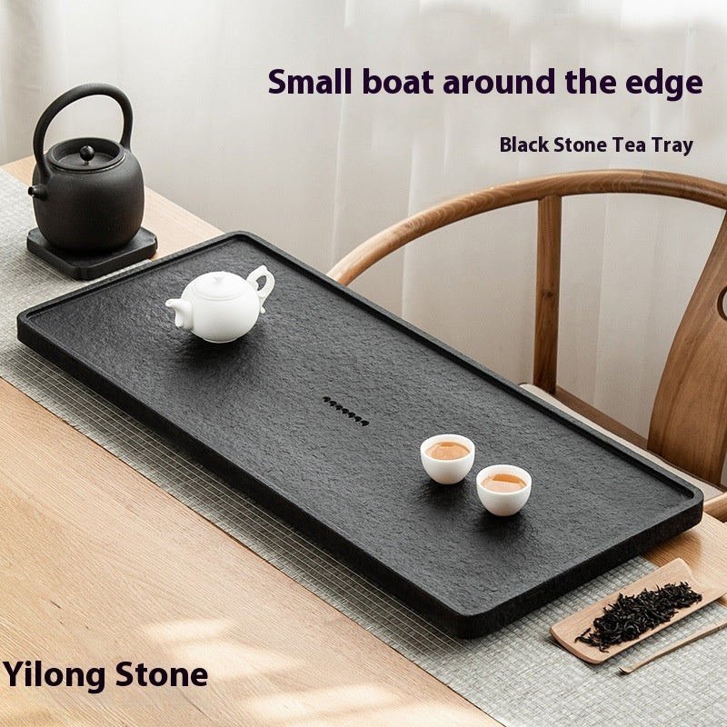 Natural Tray Home Office Black Gold Stone Kung Fu Tea Set