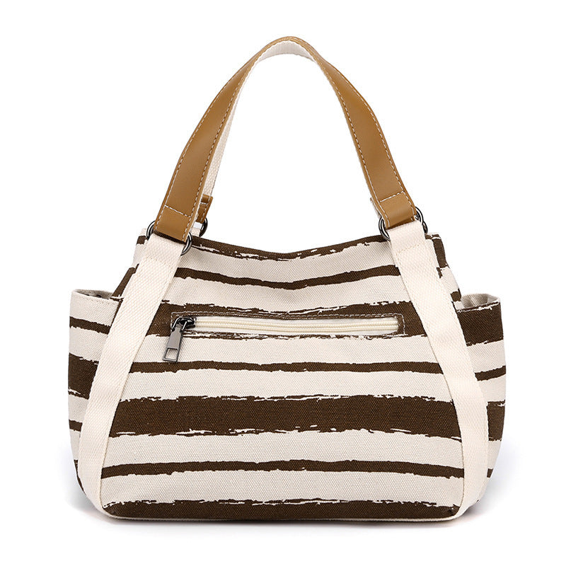 Outdoor Fashion Canvas Large Capacity Striped One-shoulder Storage Handbag