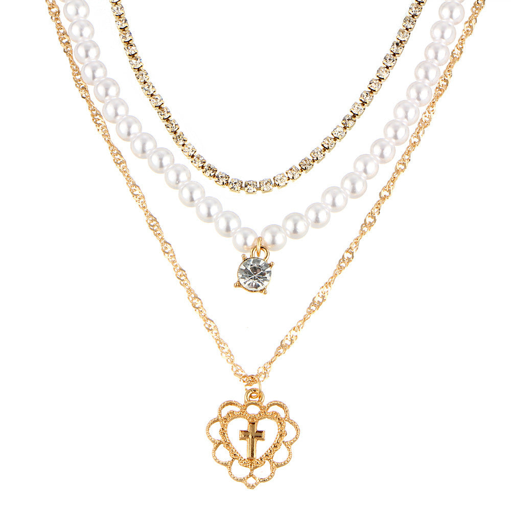 Pearl Drops Love Necklace Rhinestone Multilayer Wedding Clavicle Chain