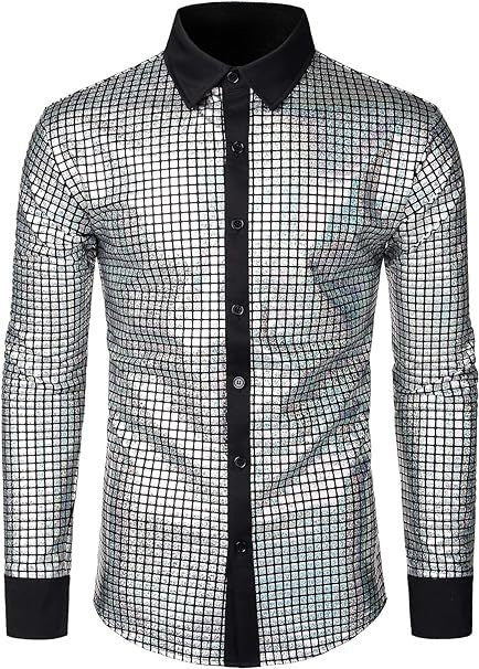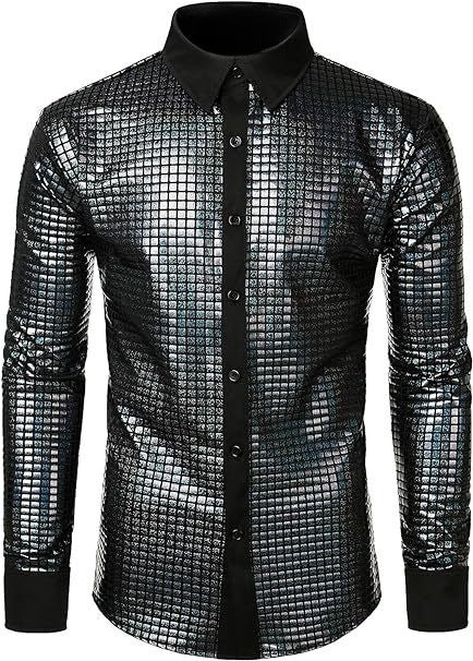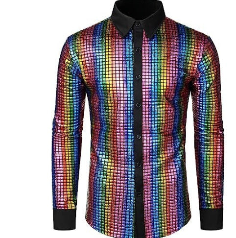 Performance Wear Sequined Casual Shirt Fashion Shiny Surface Lapel