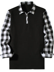 Polo Shirt Long Sleeve Plaid Lapel Casual