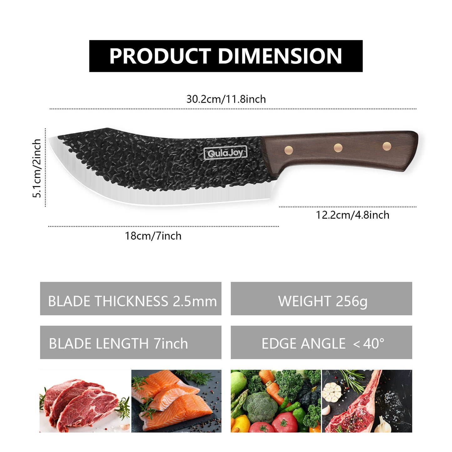 Qulajoy Meat Cleaver Knife - 7.3 Inch High Carbon Stainless Steel Butcher Knife For Meat Cutting Slicing Vegetables- Professional Chopper Knife For Home Kitchen Chef Knife