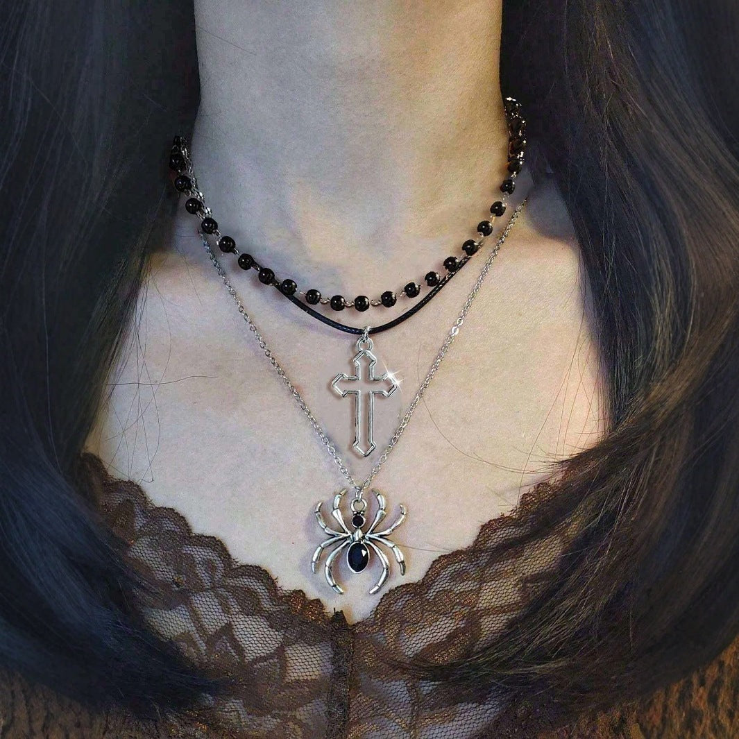 Retro Dark Spider Necklace Gothic 3-piece Set