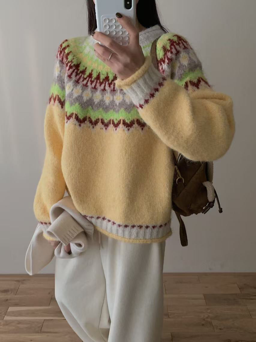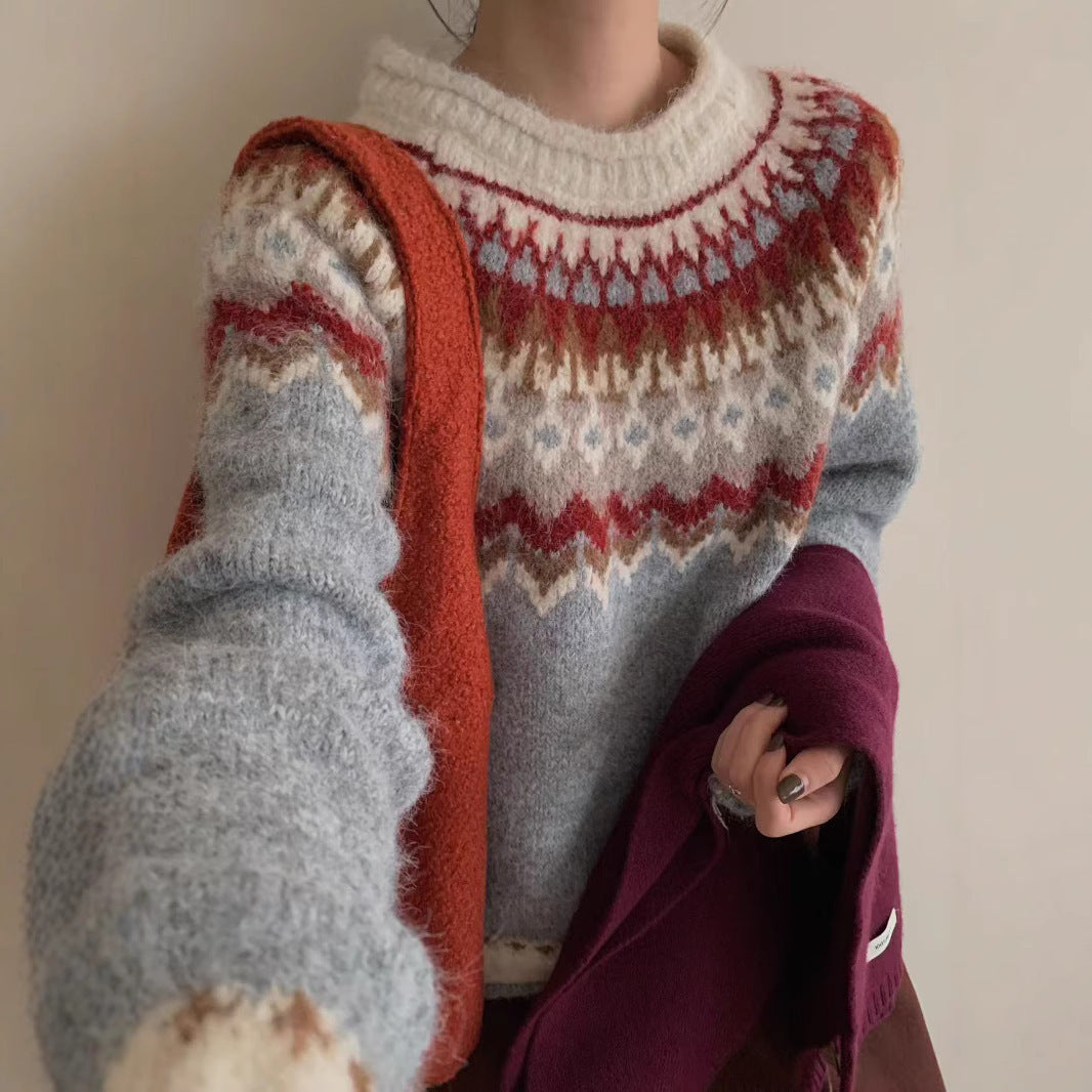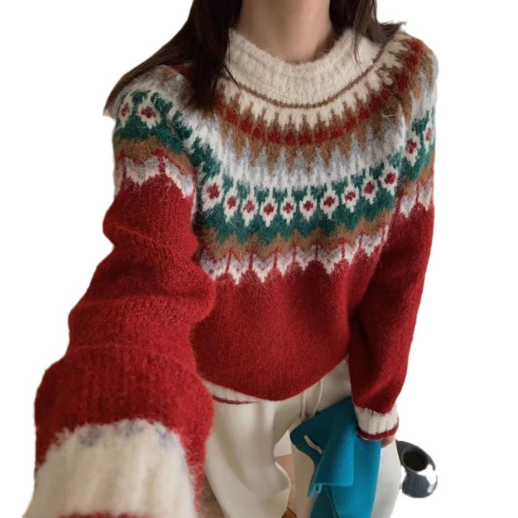 Retro Knitted Pullover Sweater Women's Loose Long Sleeve Top