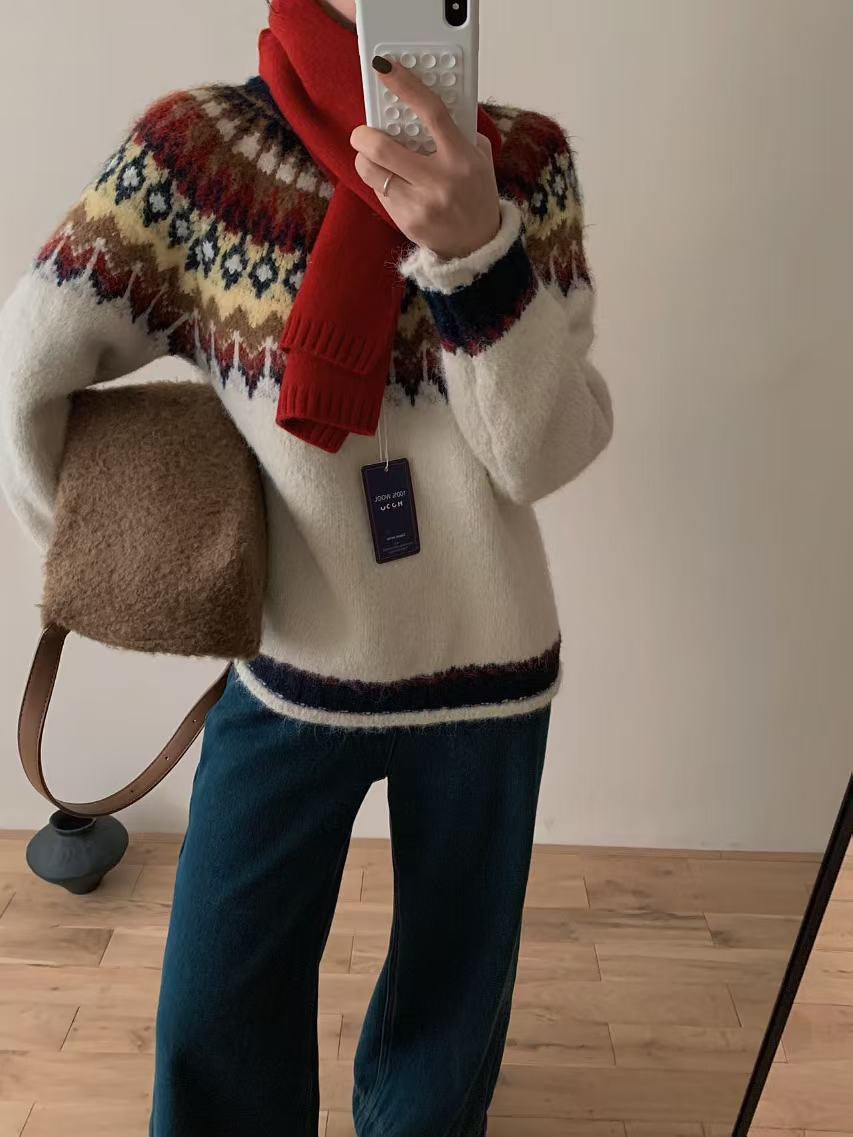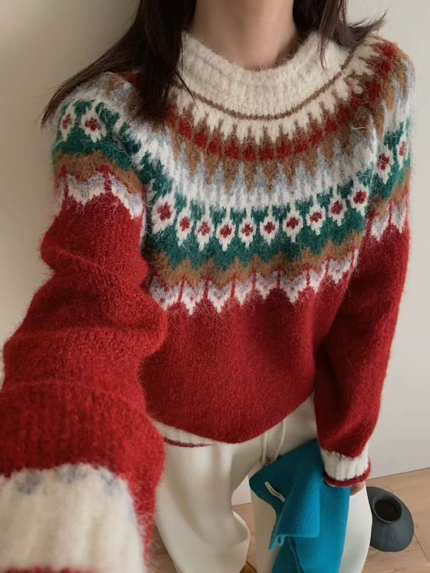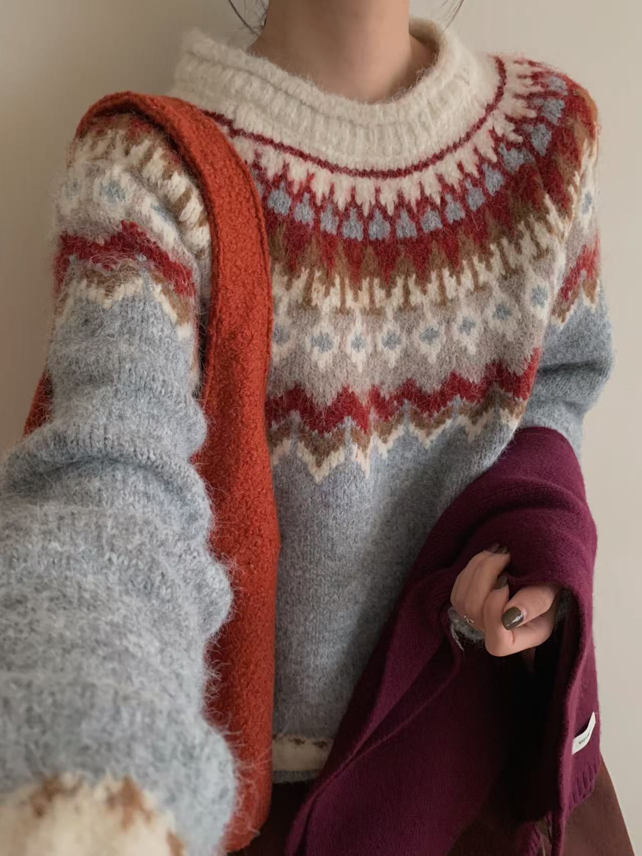 Retro Knitted Pullover Sweater Women's Loose Long Sleeve Top