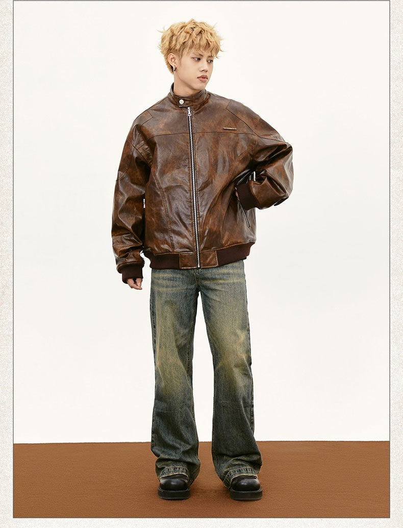 Retro Street Maillard PU Leather Color Rivet Coat