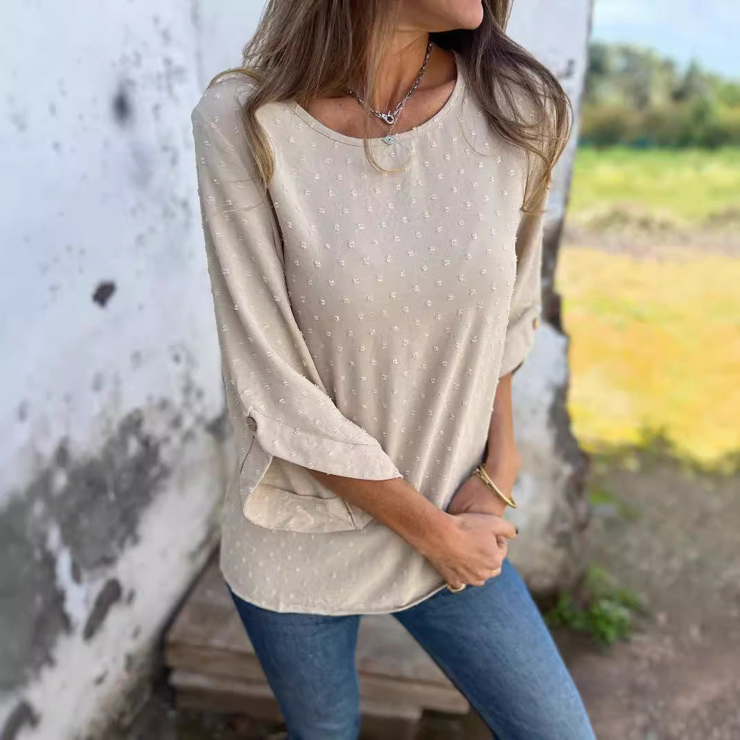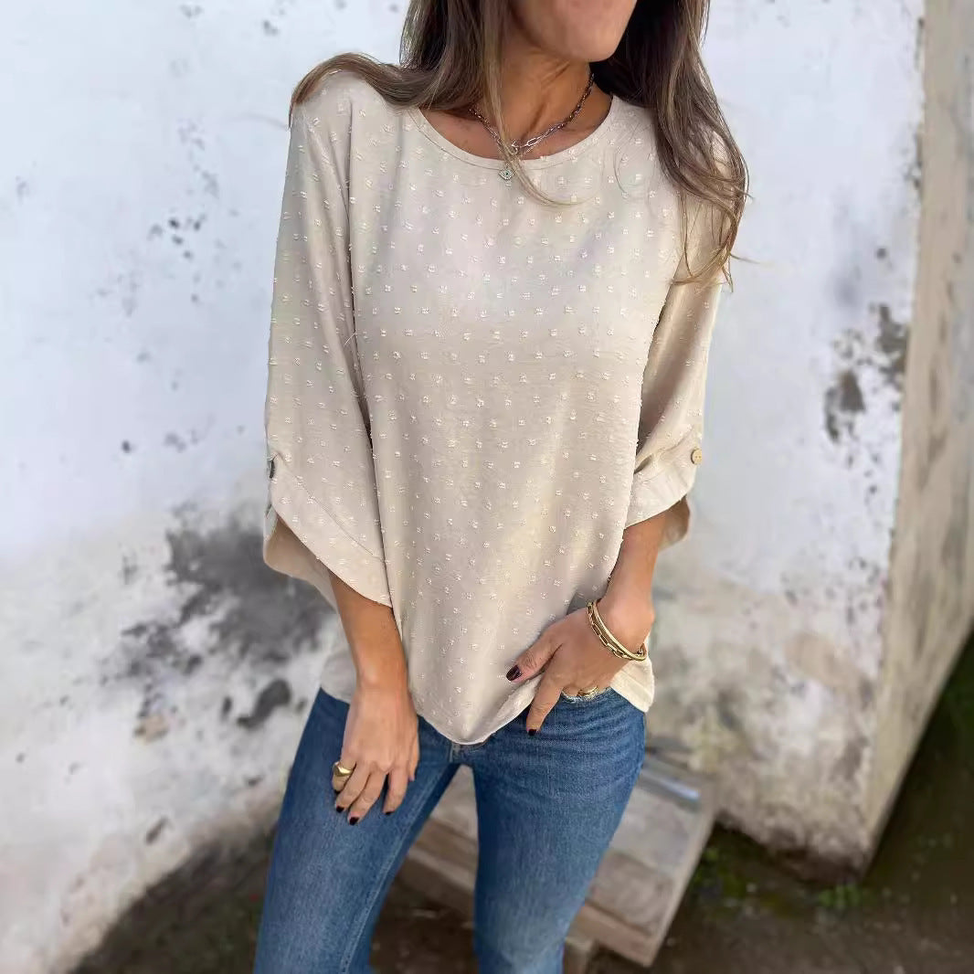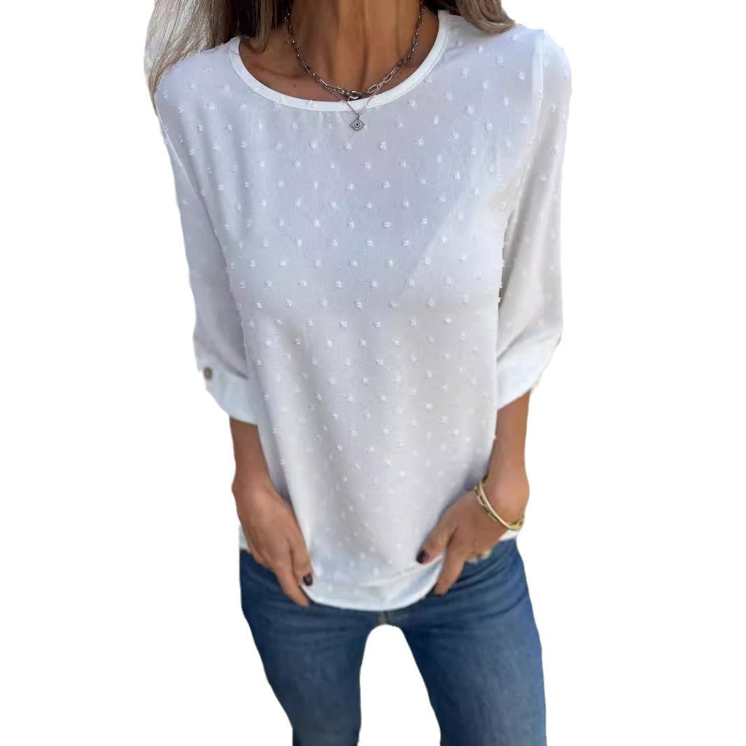 Round Neck Chiffon Jacquard Fashion Casual Loose Sweater For Women