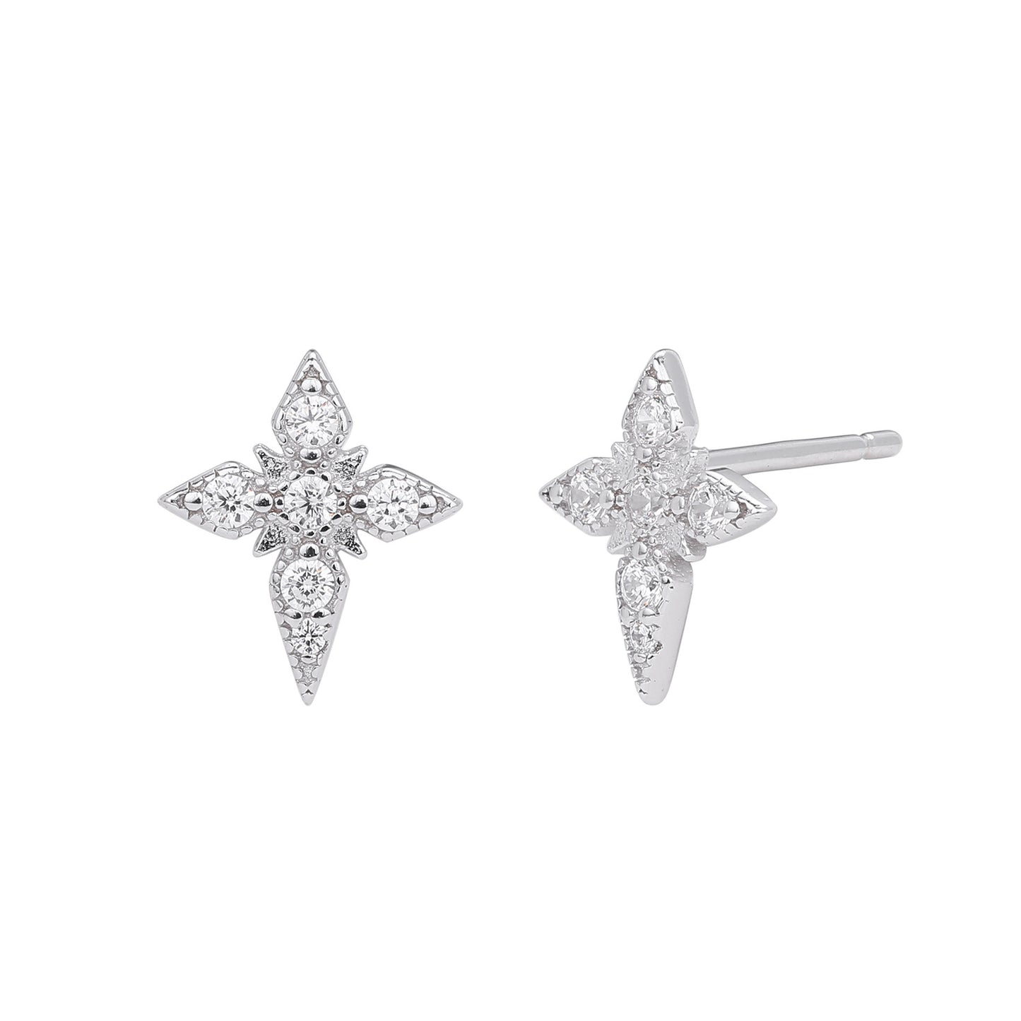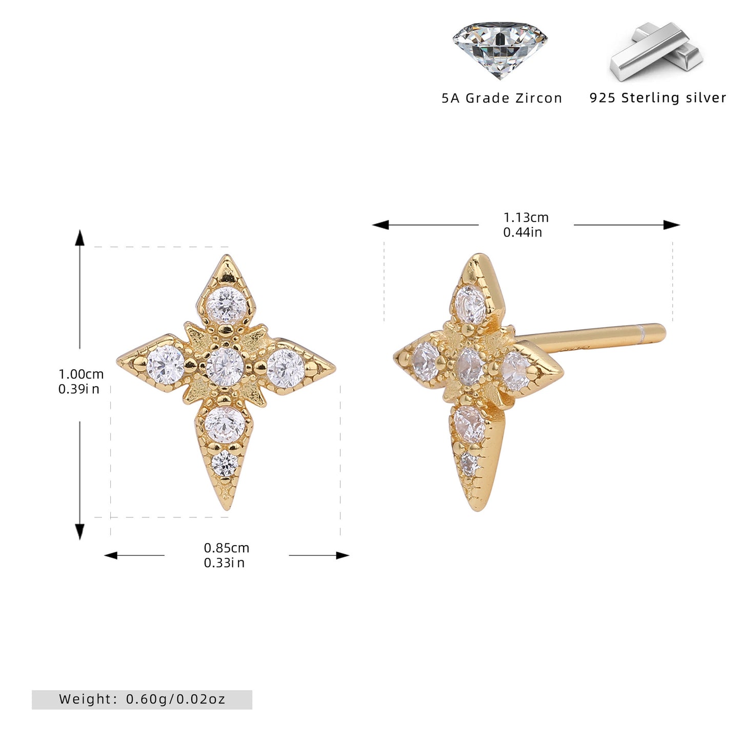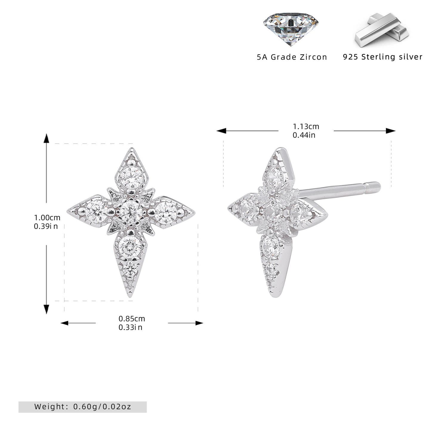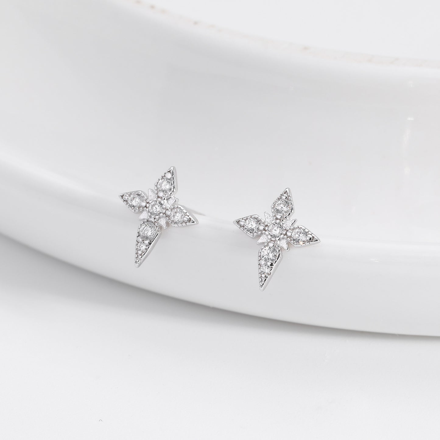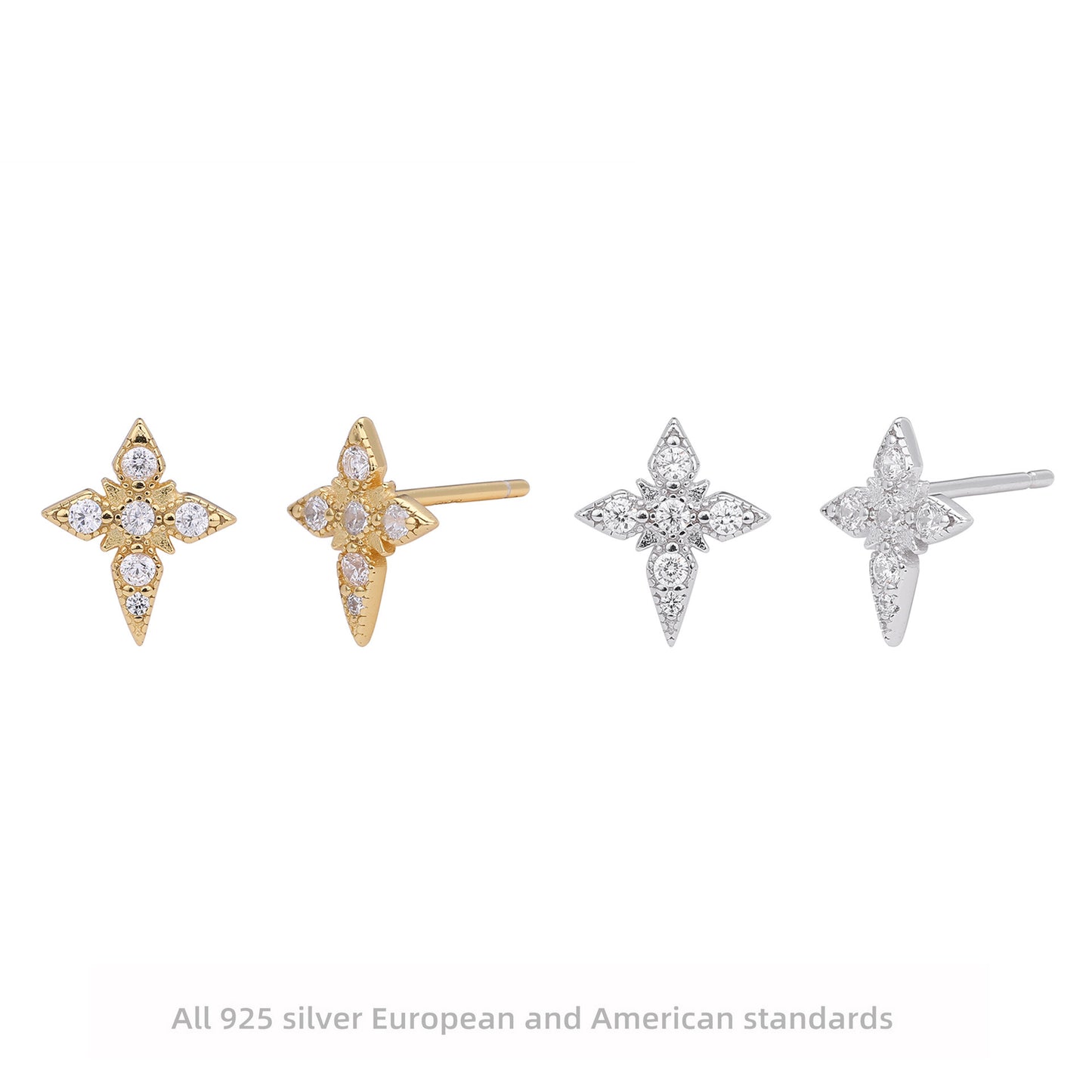 S925 Sterling Silver Diamond Four Eight-pointed Stars Stud Earrings