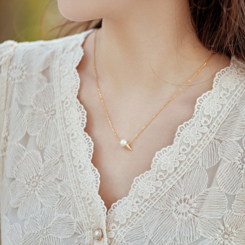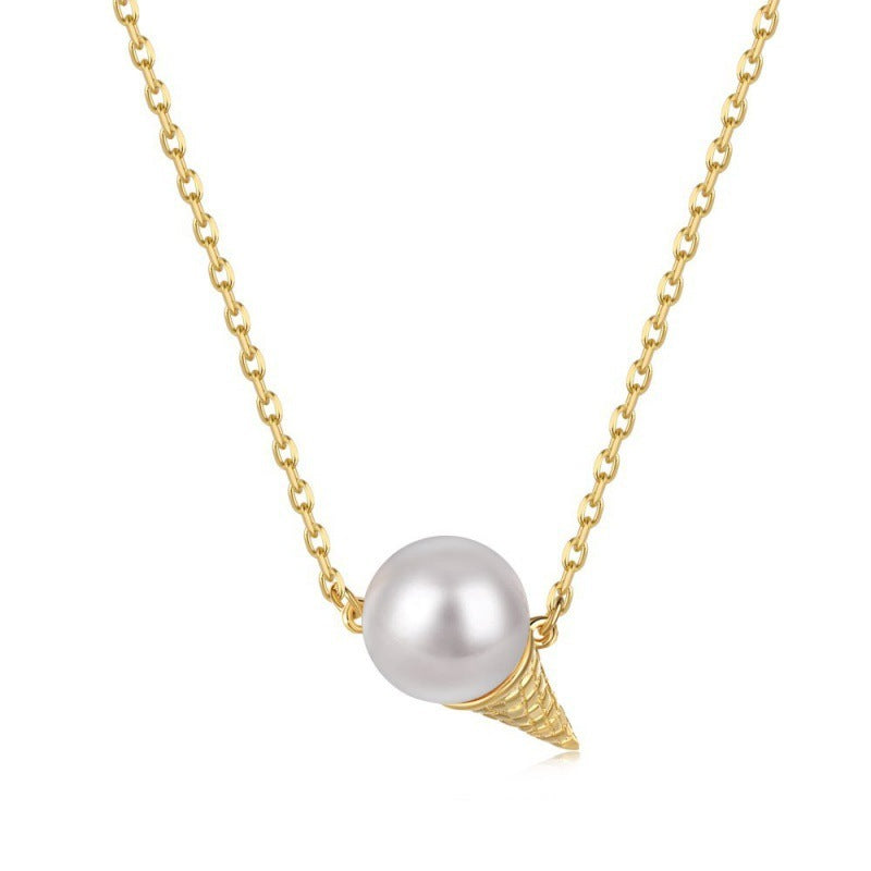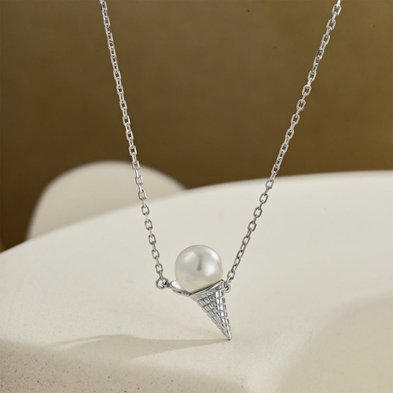 S925 Sterling Silver Pearl Necklace Women's Light Luxury Ice Cream Pendant