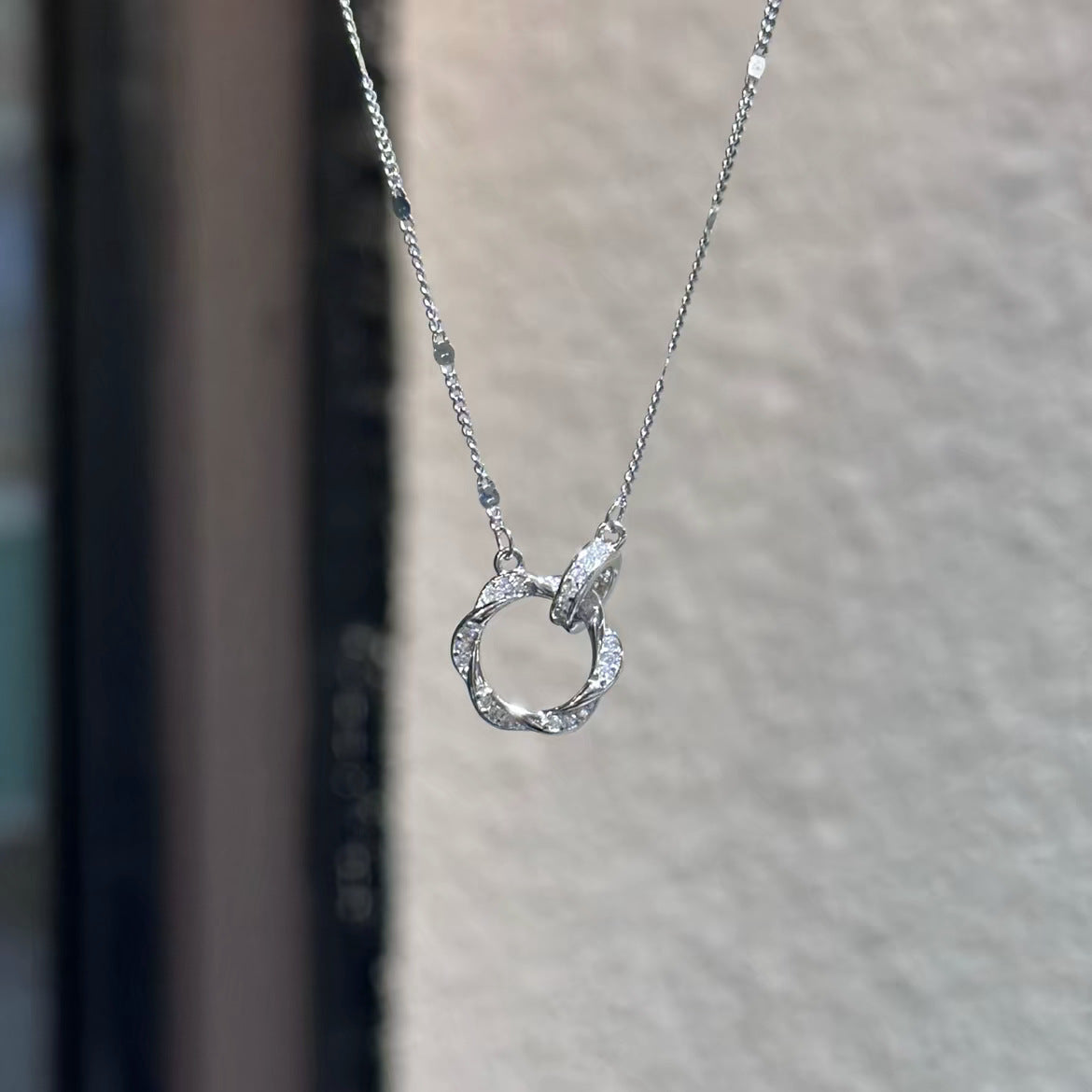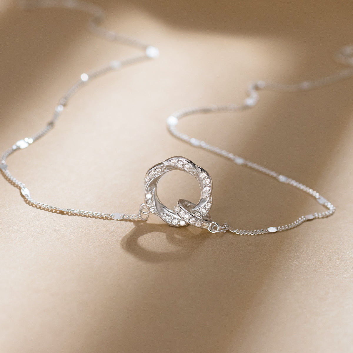 Silver Sweet Special-interest Design Diamond Twisted Necklace
