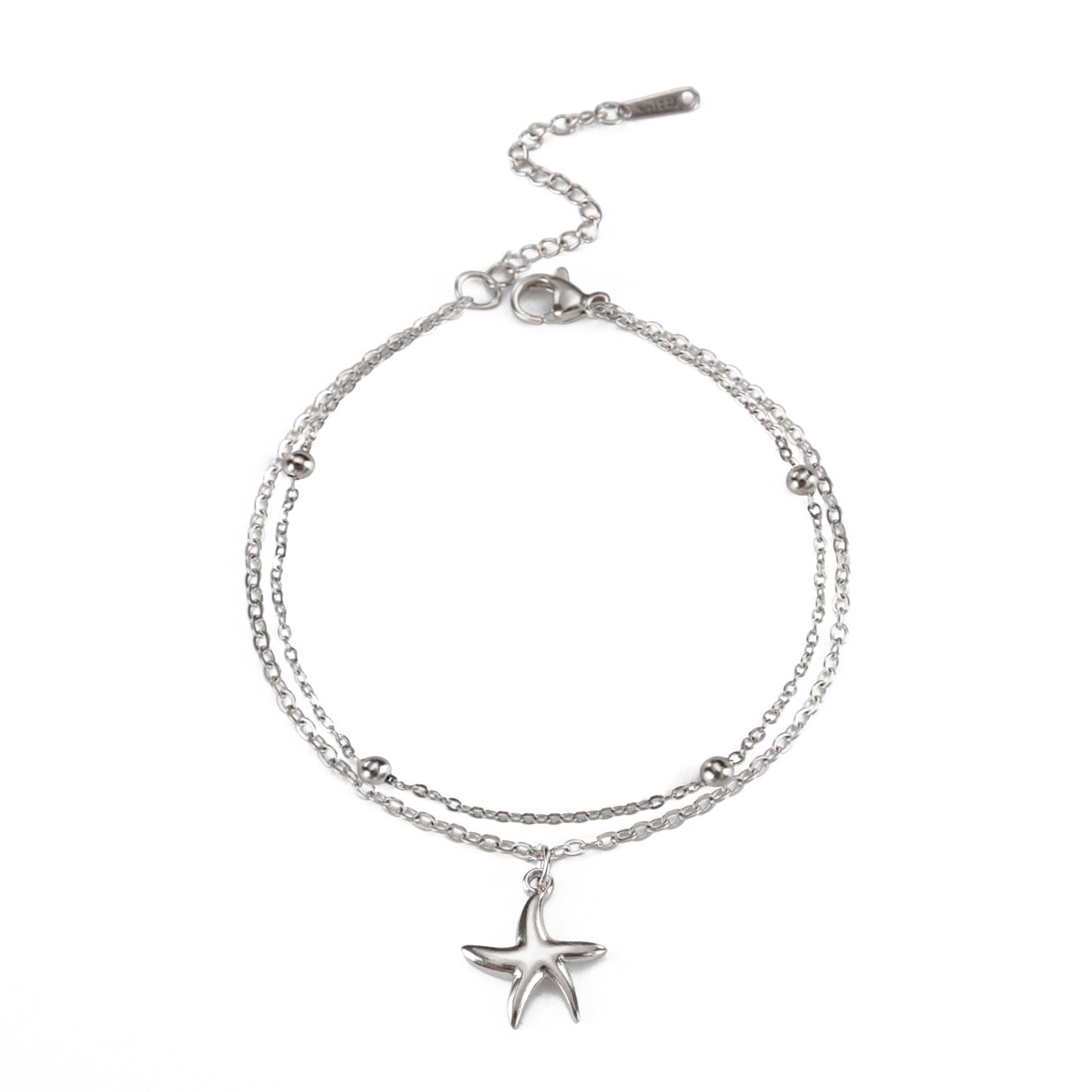 Stainless Steel Starfish Charm Bracelet Double Layer