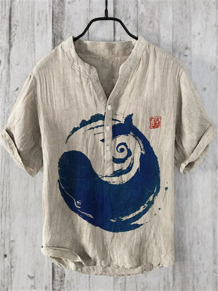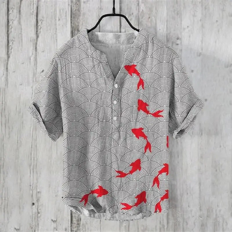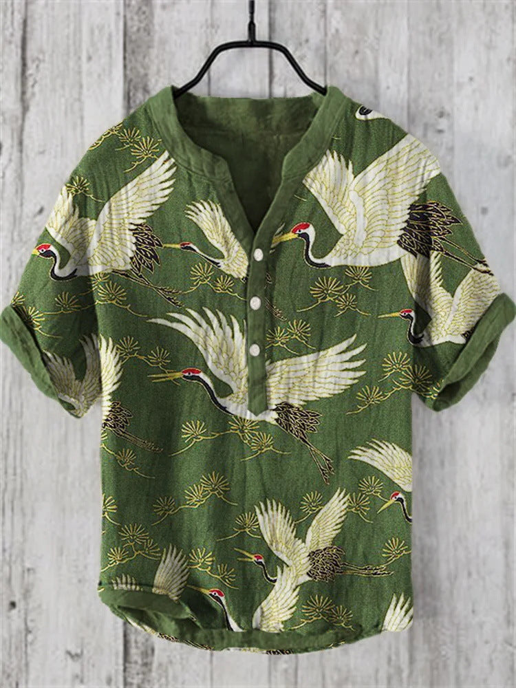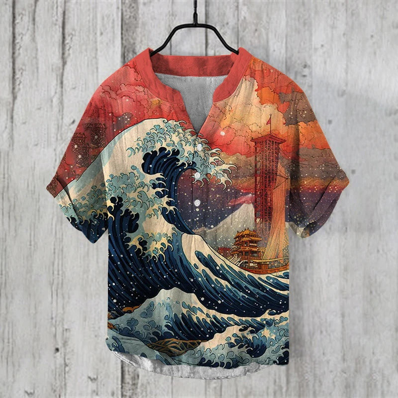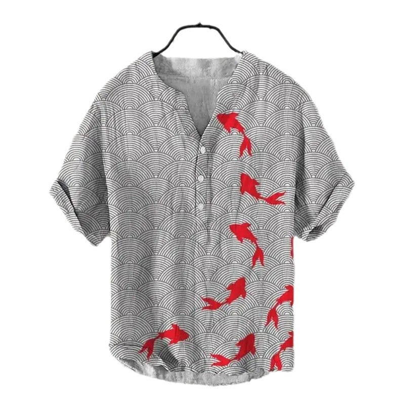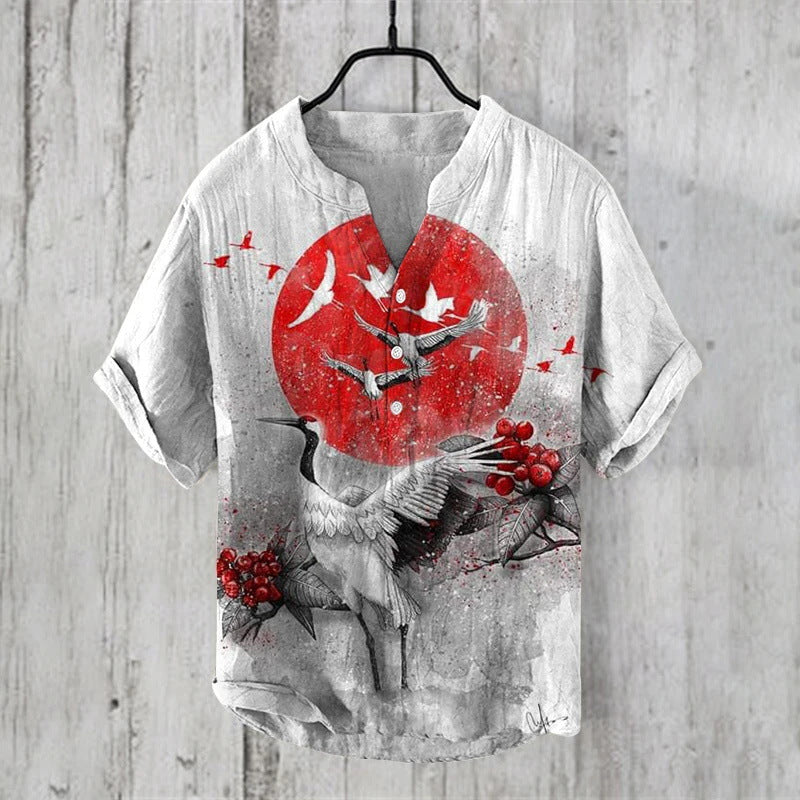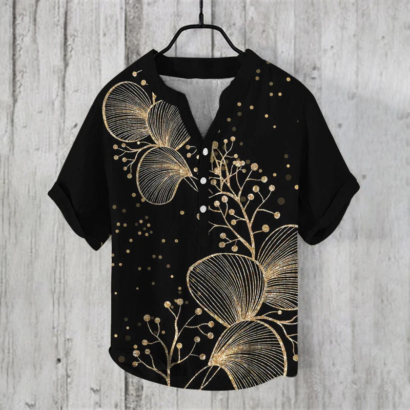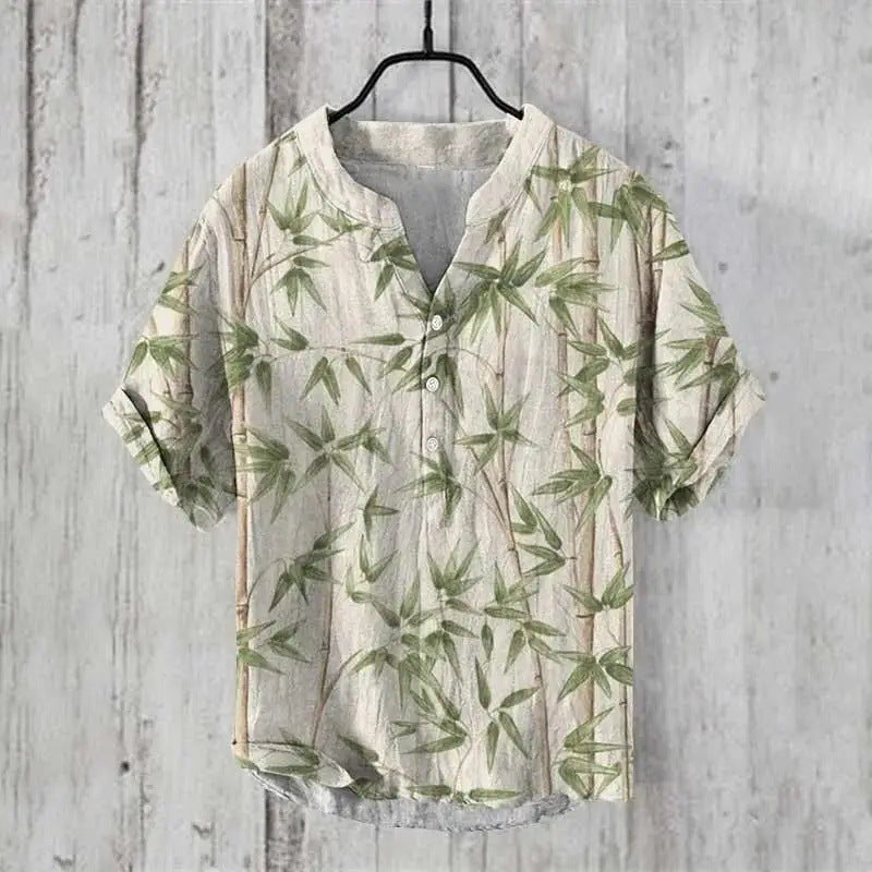 Summer Thin Printed V-neck Men's T-shirt