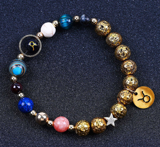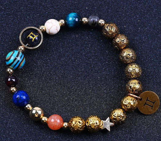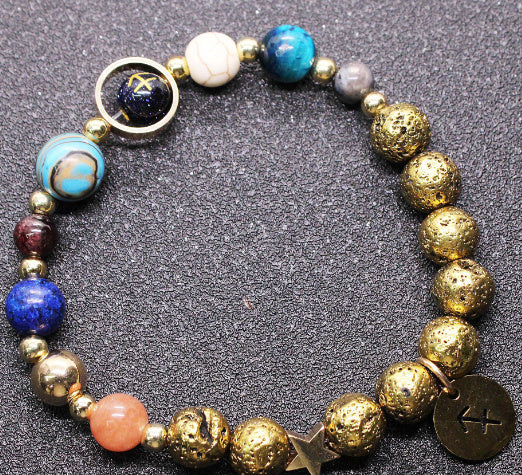 Twelve Constellations Bracelets Blue San Volcanic Rock Ancient & Gold Beaded Bracelet