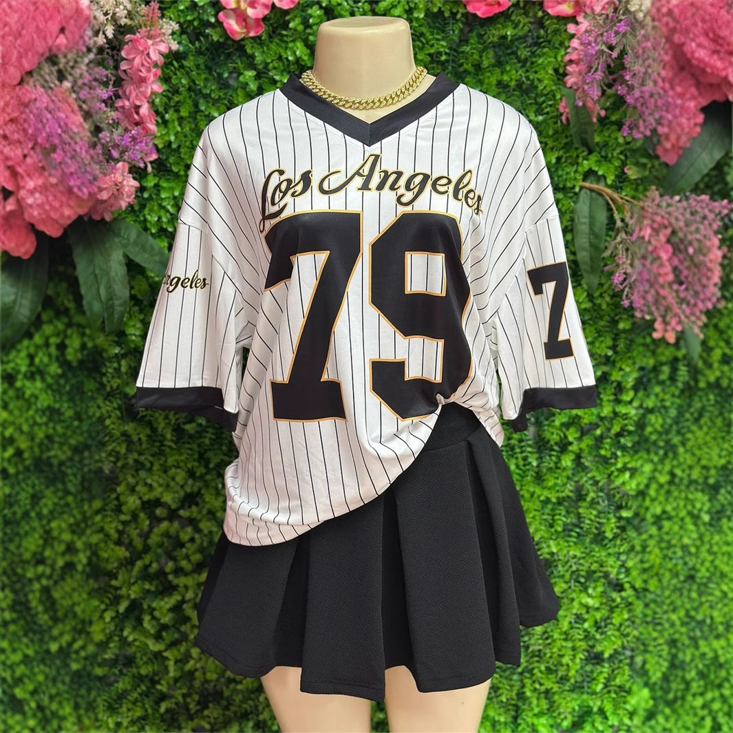 Women's Casual Loose Street Printed V-neck Short Sleeve