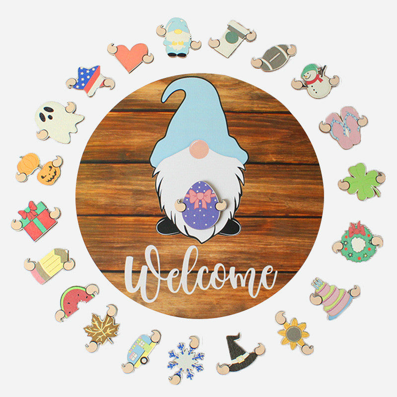 Wooden Garland Door Hanging Doll Decoration Props Wooden Sign Decoration